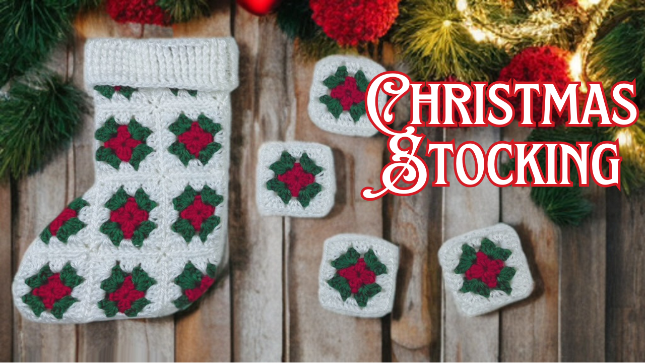 If you’re more of a visual learner, follow along with the complete step-by-step video tutorial. The video walks you through every part of the stocking, including the granny squares, layout, folding, assembly, and the ribbed cuff. It’s perfect if you want to crochet along in real time or double-check your square placement.