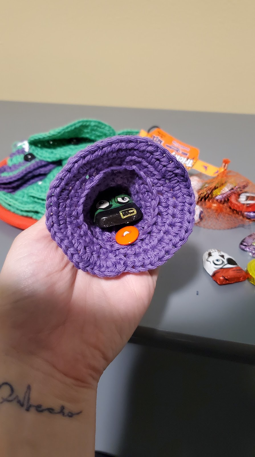These witch hats work up super quick using double crochet and half double crochet stitches. It’s so fun to play with different color combinations so each hat is unique. A button holds the hats closed so their goodies remain safely inside. This also adds a nice touch to the crochet witch hat free pattern.