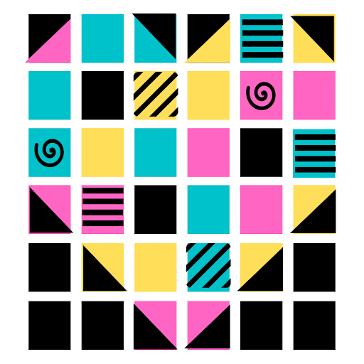Make 1 solid turquoise, 1 solid yellow, 1 half turquoise half black, 4 half pink half black, 5 half yellow half black