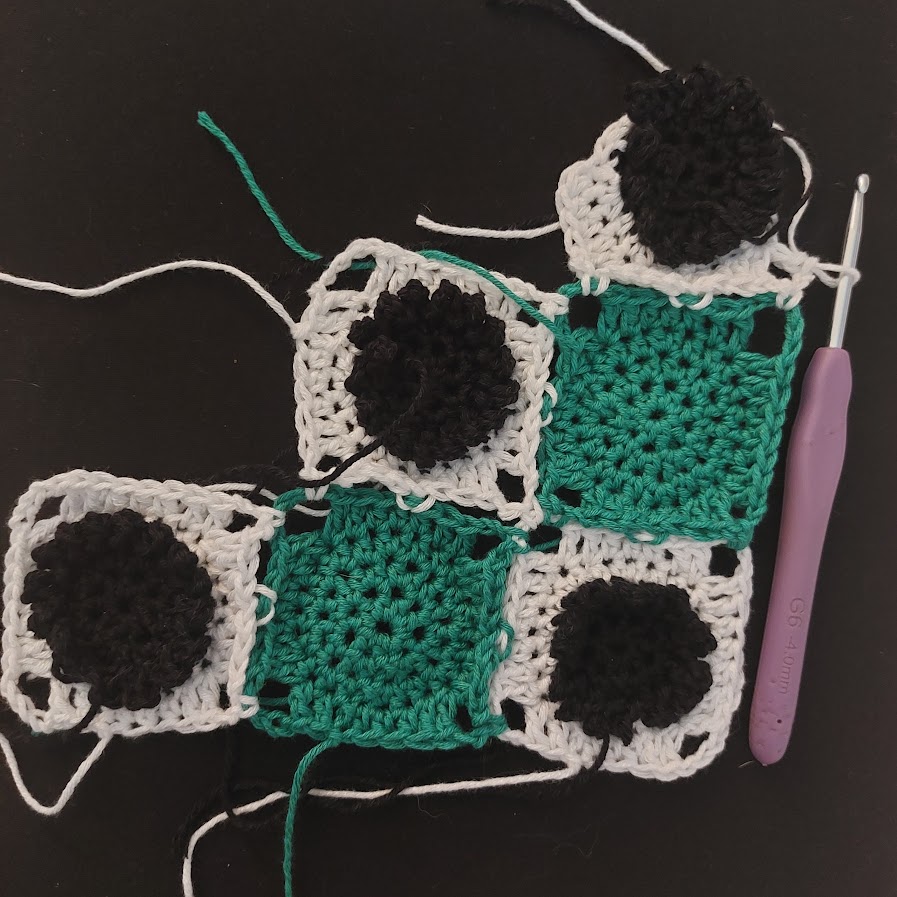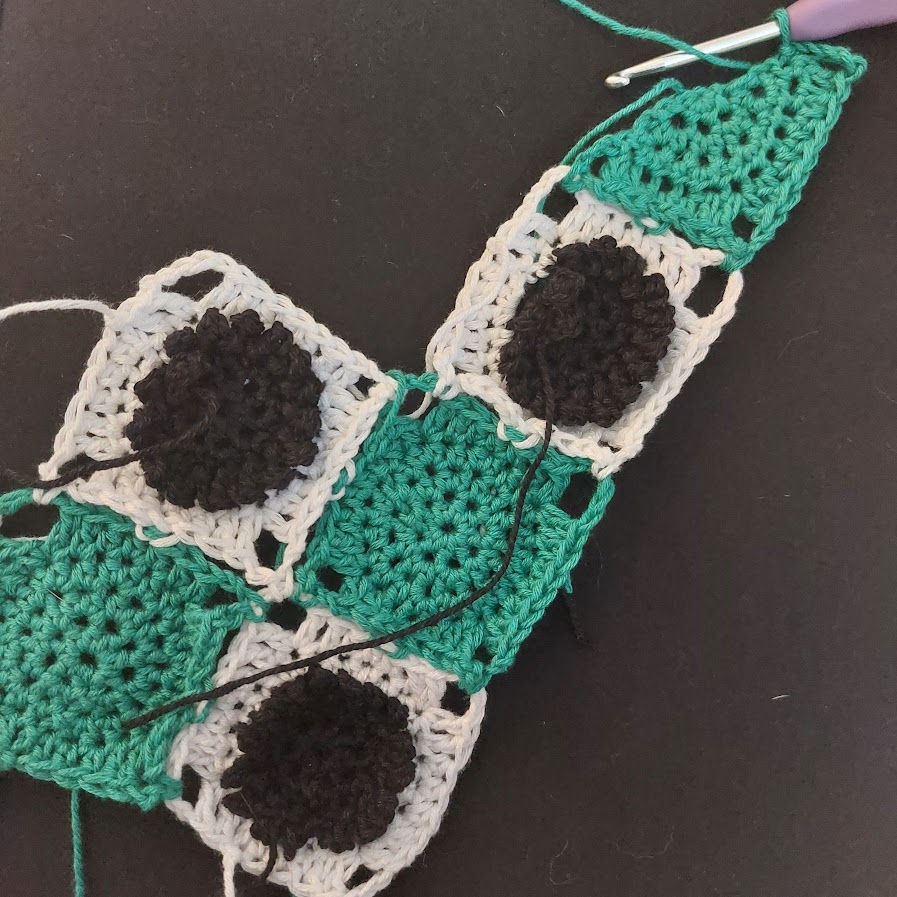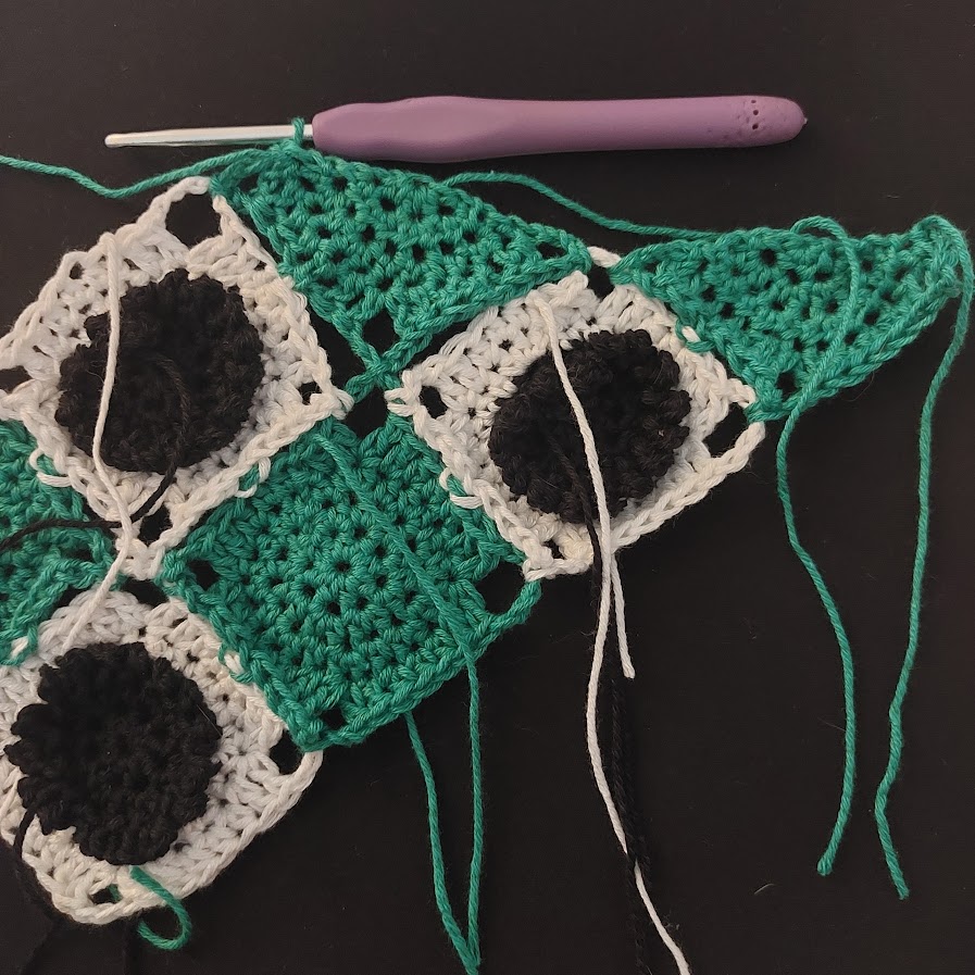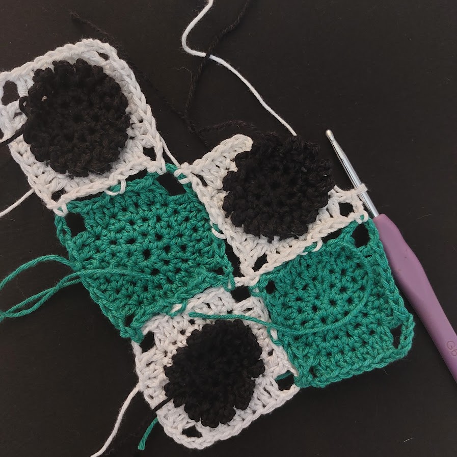 - Instructions are given for attaching the squares using the join-as-you-go method, but feel free to crochet the squares separately and use a different attachment method.